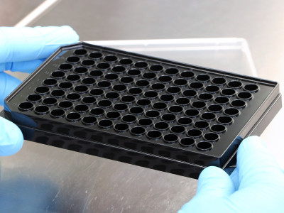 • 用于高通量細胞分析實驗的黑色圓形孔、平底、透明的96孔培養板